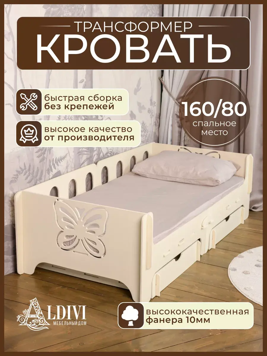 Предлагаем вам универсальный вариант детской кровати российского производителя мебели для детской комнаты ALDIVI.