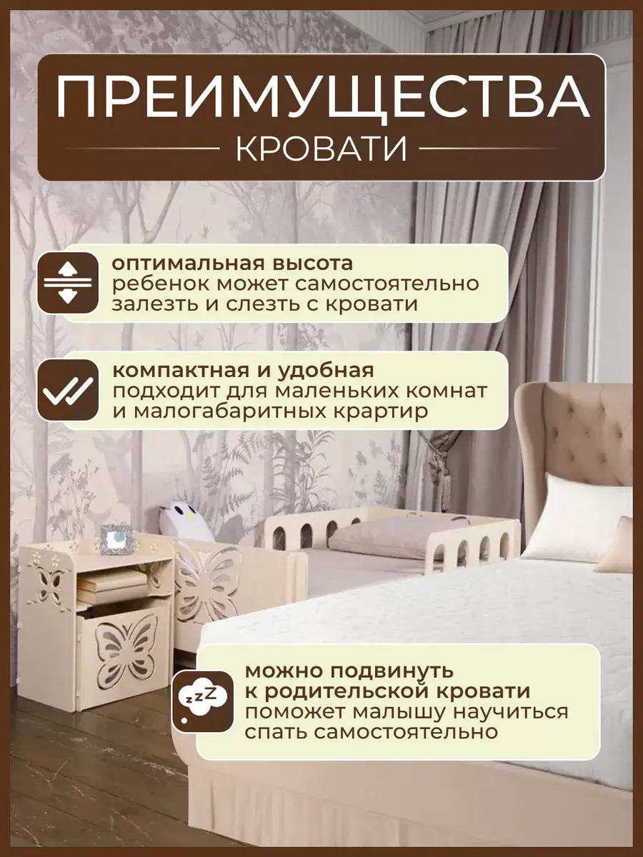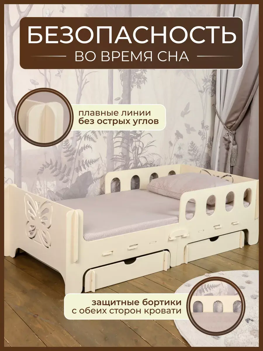 Для безопасного сна самых маленьких малышей они стоят по обе стороны, что оберегает их от падения во сне.