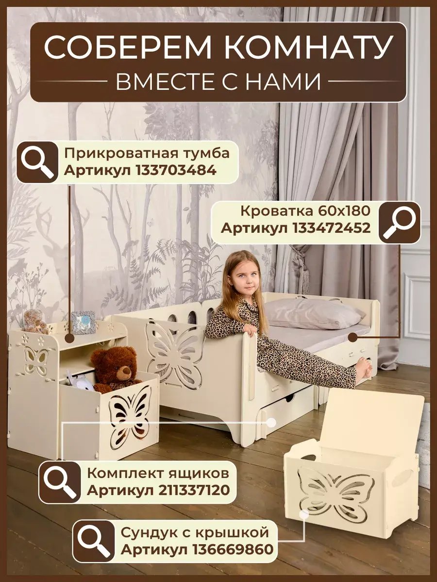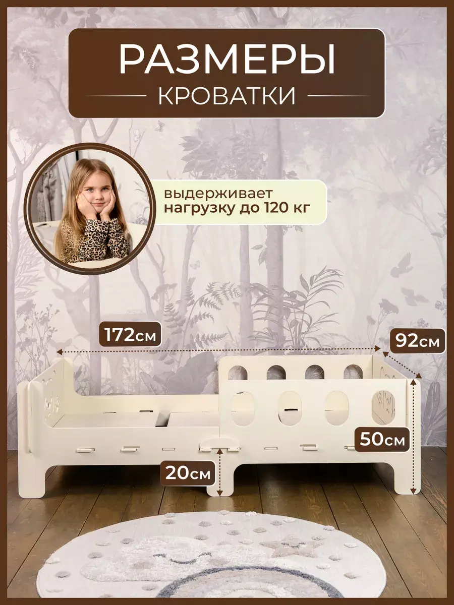 Компактная деревянная кроватка в детскую сделана натуральной фанеры, качественно обработана, имеет закругленные углы. Невысокая, поэтому на нее комфортно залезать и слазить самостоятельно.