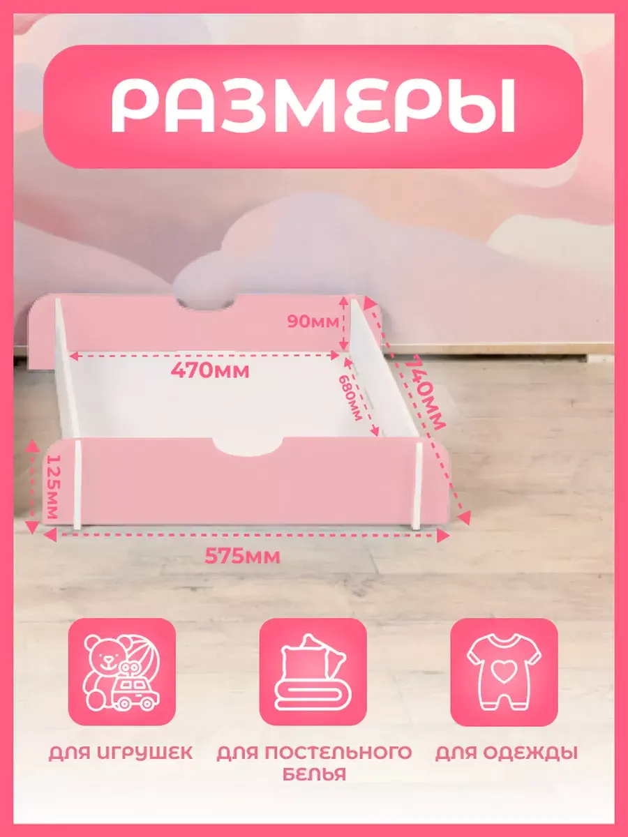 Идеальное решение для хранения вещей под кроватью! Ящики для детской кровати, выполненные из прочной березовой фанеры, позволяют эффективно использовать пространство в вашем доме. Каждый ящик оснащен колесиками, что делает его перемещение легким и удобным. Вы можете хранить в них одежду, игрушки или постельные принадлежности. Ящики имеют безопасный вид и отлично вписываются в детскую комнату благодаря белому цвету. Позволяют разместить все необходимые вещи, не занимая лишнего места. Благодарим вас за выбор наших ящиков под кровать! Вы полюбите их за функциональность и стиль.